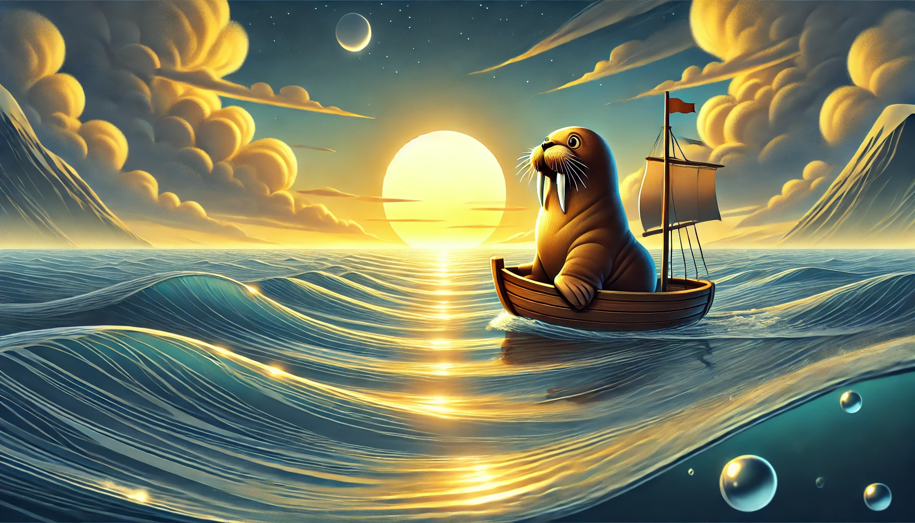 A szél lágyan fújt, a nap sütött, és a csónak lassan megindult a horizont felé, miközben a legény és a rozmár összhangban haladtak előre. A legény büszkén húzta az evezőt, míg a rozmár vidáman bukdácsolt a vízben. Az út eleinte békés volt, de mindketten tudták, hogy ez csak a kezdet. Valahol odakint az óceán mélyén egy titkos labirintus rejtőzött, és ők most a bejárat felé tartottak.
