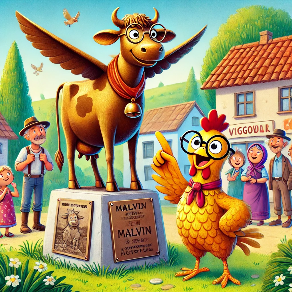 Malvin, a röpködő tehén egy bolondos falusi kaland hőse, ahol a humor és a bátorság szárnyakat ad. Ez a rövid tréfás mese garantáltan mosolyt csal az arcodra!